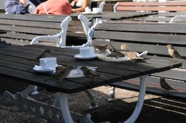 On poursuit vers un autre endroit charmant et calme : Gottskar. Café et patisserie au soleil, au milieu des moineaux. 14:15, c’est l’heure de repartir vers l’aéroport de Lanveter. Arrivé à 15:00, Pierre me dépose (il retourne à Göteborg pour sa conférence lundi, mardi, mercredi). Formalités express, embarquement sans problème, décollage 5’ avant l’heure et vol tranquille au soleil. J’avance mon livre (Twilight ...). Arrivée à CDG 2G au milieu de nulle part. 15 minutes quand même pour récupérer ma valise, 15 minutes de navette bondée pour rejoindre la gare SNCF. Heureusement, je peux prendre le TGV de 18:40 ... et à 20:10 je suis à l’appartement après avoir croisé Stéphane rue de Gand !