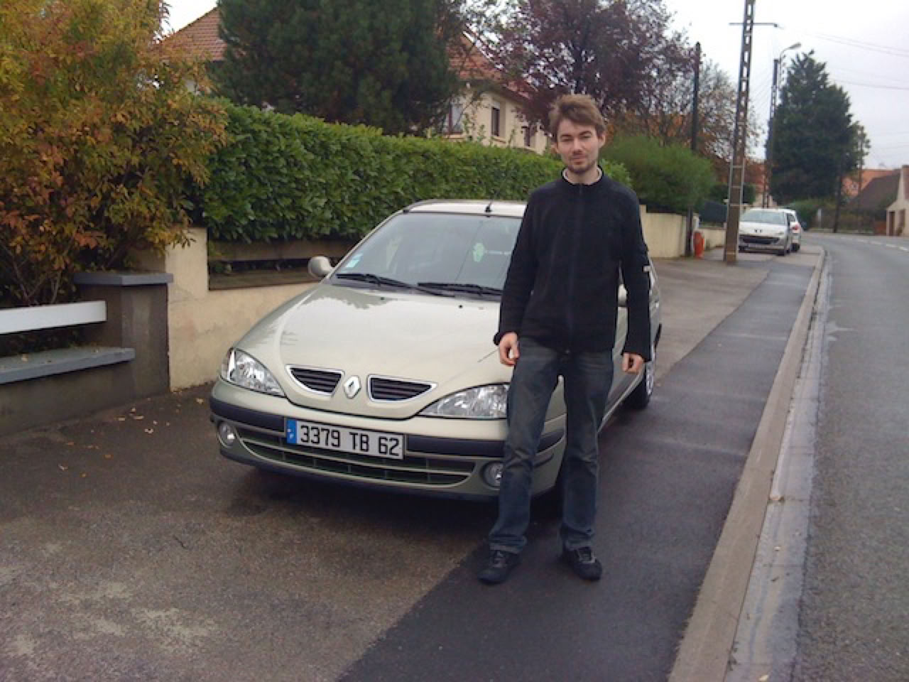 En avance de phase avec ses 20 ans, toujours prévus en novembre 2009, Tristan est allé cherché sa première voiture : un Megane 1.6 RXE de 2000 et de 87000 km. Plutôt bien équipée, un bon moteur (essence), une carrosserie en parfait état, le tout pour un prix raisonnable.