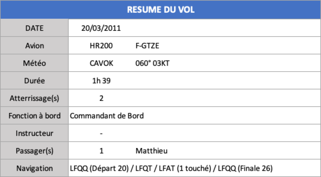 Belle arrivée sur la mer verticale Hardelot. La baie de la Canche est toujours aussi belle vue d’en haut. Contrôleur aérien accueillant au Touquet ... ça n’a pas toujours été le cas. Toucher piste 32 au Touquet : je cabre tellement l’avion au sol pour profiter du freinage aérodynamique que je touche la béquille arrière : ça fait un peu de bruit mais rien de violent). Pour le retour, c’est Matthieu qui tient l’avion, sous ma surveillance : toujours aussi précis dans la tenue du cap et de l’altitude, Matthieu, et bonne surveillance du trafic (il repère un avion plus bas verticale Merville). S’il avait le temps et l’argent, il pourrait sans problème devenir pilote privé !