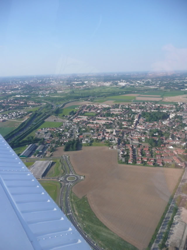 Et donc c’est après une préparation rapide du vol local, une bonne préparation de l’avion, quelques explications pour l’embarquement des ‘passagers’ que nous voila en train de décoller piste 08 pour un joli ‘carré’ dans l’ouest lillois : points Novembre, Whisky (le préféré de Karine), Sierra-Whisky et retour sur le terrain avec une belle finale stabilisée (c’est facile avec le TB9, pépère mais bien stable). La visibilité était magnifique.