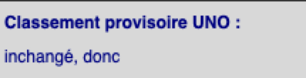 Classement provisoire UNO : malgré quelques sursauts, le classement reste le même:
