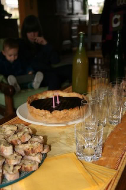 2 ans déjà ! Toute la famille est là pour fêter comme il se doit l’ anniversaire de la petite G. . Et comme il fait un temps de chien dehors, on se tient au chaud à l’intérieur, autour de la cheminée, de bons toasts pâté ou foie gras, de Champagne et d’un bon repas.