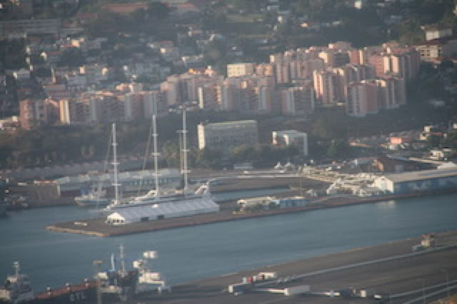 Atterrissage en douceur, débarquement et récupération rapide des bagages. Le bus nous attend pour rejoindre Le Ponant. Ce qu'on voit de Fort de France depuis le bus ne fait pas très envie: raffinerie, décharge, incinérateur ... Mais quand on arrive sur le port et qu'on aperçoit notre superbe bateau, tout change ! Avec ses trois immenses mats, il donne plus l'impression d'un grand yacht élancé que d'un bateau de croisière.