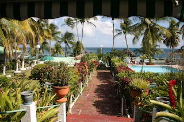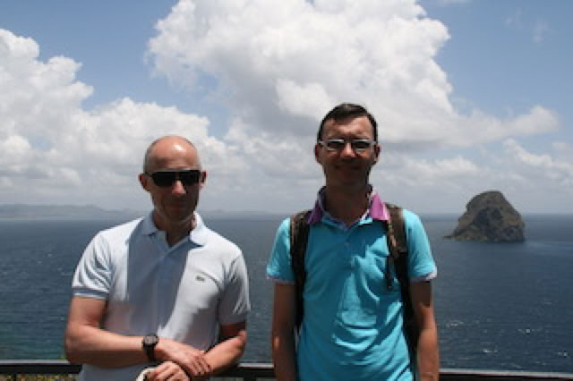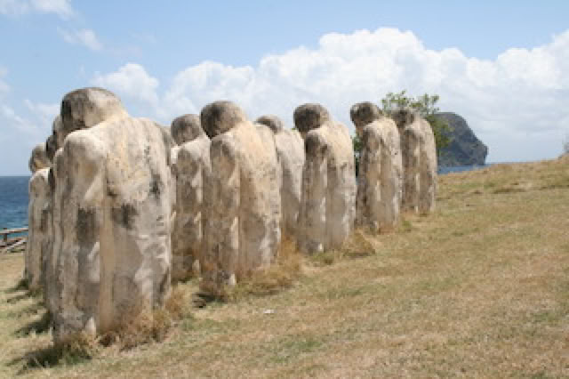 Nous découvrons ainsi quelques sites touristiques : le village de la poterie ... surtout intéressant pour son agréable tea-room sous les palmiers, le musée de la canne, beaucoup plus intéressant pour découvrir l’histoire de cette production essentielle de la Martinique et aussi celle de l’esclavage. Ensuite, tour en bus pour contempler le site de la Baie du Diamant, avec ce fameux rocher mystérieux en forme de diamant qui émerge de la baie. On passe rapidement devant la «Maison du bagnard» et on s’arrête quelques minutes au Mémorial du Diamant qui rappelle l’histoire dramatique de ces esclaves échoués envoyés au bagne ! Enfin, le déjeuner a lieu dans un petit hôtel-restaurant, avec un beau jardin tropical face à la baie. L’occasion aussi de déjeuner avec des passagers que nous n’avions pas eu l’occasion de fréquenter sur le Ponant, le «groupe des plongeurs», sympathiques et intéressants (d’anciens champions de natation).