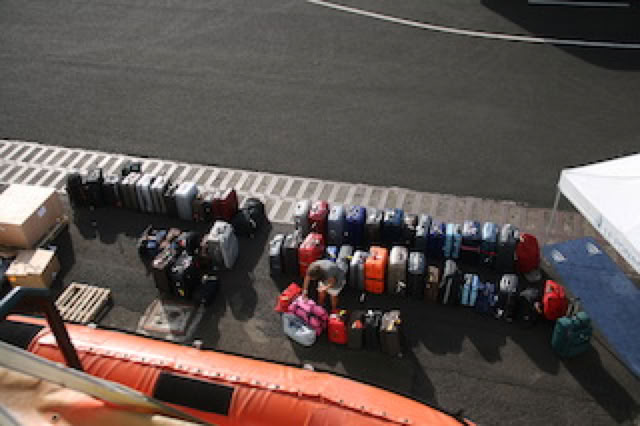 Sur le lit dans notre cabine, nous trouvons une invitation pour un cocktail privatif du commandant à 19h45 ... mais en fait c’est plus tôt (petite erreur sur l’invitation ...). Néanmoins, nous sommes, Pierre, Fabienne, Charles et moi installés devant la passerelle avec le commandant et Sarah: champagne, petits toasts au caviar et discussion intéressante avec le Commandant : un petit sentiment de privilège. Nous soupçonnons la remarquable prestation de Pierre la veille pendant la White Party d’être à l’origine de cette invitation par l’entremise de Sarah Happy