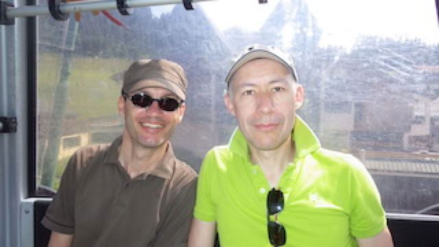 On arrive donc en fin d’après midi sur site et nous faisons un premier tour à quatre : Xavier, moi, Pierre et Christophe. Auparavant, je me suis arnaché pour fixer l’appareil-photo/caméra sur ma poitrine afin de filmer la descente. Descente rapide, car c’est une bonne luge d’été, sur une piste métallique plutôt rapide et avec de nombreux virages relevés. Christophe arrive assez tranquillement :)