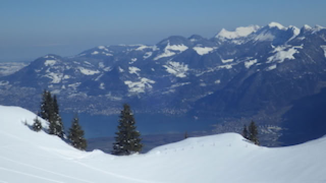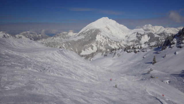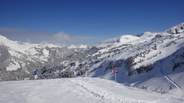 Redescente sur Torgon puis retour vers Super Châtel. On tente la rouge du Morclan: un peu abrupte pour moi mais ça passe sans casser ... Puis bascule vers le Linga : nous descendons sur le lac de Vonnes par la piste bleue … pas terrible. Une montée à la tête du Linga puis descente... vers la liaison Super Chatel, car la piste principale du Linga est fermée, réservée aux compétitions. Bref, on ne reste pas longtemps au Linga, mais nous aurons vraiment profité ce matin du domaine de La Chapelle et de Torgon, moins fréquenté et pourtant superbe.