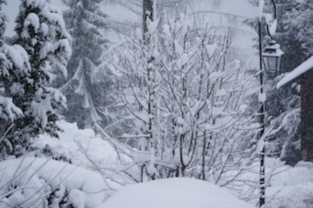 Au réveil, c'est tempête de neige dehors ! Il est bien tombé 10 à 15 cm de neige dans la nuit.