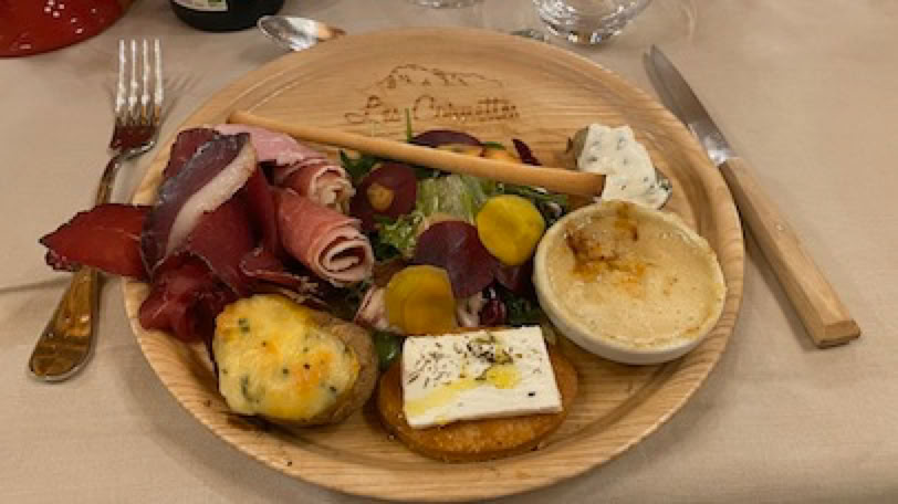 Pour le dîner, ce sera notre traditionnelle sortie aux Cornettes, à La Chapelle d’Abondance. Toujours aussi bon et très copieux (la salade en entrée suffirait presque …), le service par contre nous déçoit beaucoup, entre le « ON a choisi ? » de la jeune femme qui prend la commande ou le serveur taciturne qui ne dit pas un mot … Il faudrait que la patronne reprenne les choses en main ! Ça ne nous empêche pas de passer une bonne soirée à deux et de patienter en fin de repas pour une belle omelette norvégienne, qui nous rappelle un fameux souvenir avec Xavier et Ugo en 2016 au même endroit.