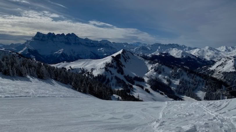 Même si je dois me faire un peu violence pour ne pas rester au lit et pour m’équiper pour le ski, il serait dommage de ne pas profiter de la neige fraîche et du soleil au vu de la météo très moyenne qui s’annonce pour le reste de la semaine … C’est donc sous l’impulsion de Pierre que nous nous retrouvons sur nos skis, en haut de Barbossine, au soleil, et avec une neige très agréable à skier : pas très épaisse, mais fraîche et bien damée, pas gelée. Et du coup, on se fait vraiment plaisir pour cette première sortie en restant sur le secteur de Super Châtel, avec de beaux paysages.