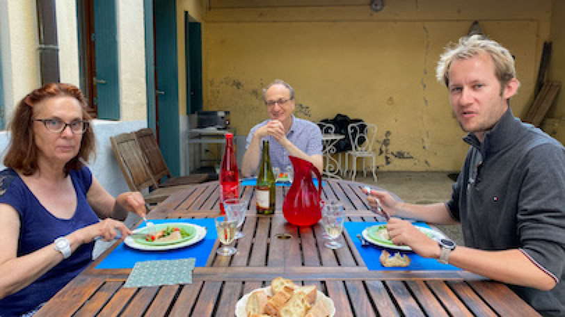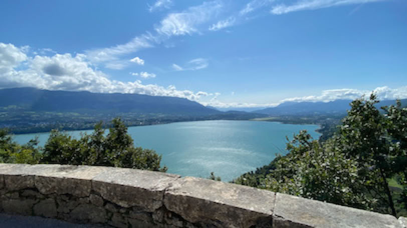 C’est déjà le retour. Presque pas de ménage à faire : c’est prévu dans le prix de l’appartement. A 9:30, nous partons, avec un peu de regret. Nous ferons une première étape, un peu nostalgique, au bord du Lac du Bourget. Pendant plusieurs années, c’est chez mon oncle Francis, à Tresserve au dessus du Lac du Bourget que nous faisions traditionnellement étape … Puis, plutôt que de passer par le tunnel du Chat, nous passons par la petite route du Col du Chat, avec son superbe point de vue sur le lac. Puis nous faisons étape chez ma cousine Catherine et son mari Nicolas à Belley, pour un bon déjeuner au soleil dans leur jardin. Et enfin, retour en région parisienne par une route finalement bien chargée pour un lundi (régulation à 110 et 90 sur une bonne partie de l’A6 …).