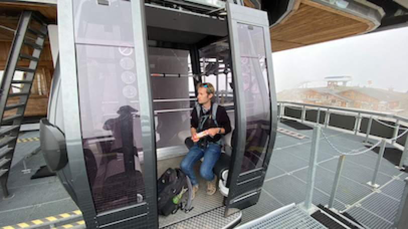 Après un bon moment passé à les observer, nous terminons la montée. Le sommet est quasiment dans les nuages, plutôt désert. Nous mangeons quelques Pim’s assis dans une télécabine ouverte du fameux Bruyère 2 à l’arrêt.