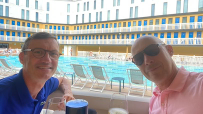 Quelques fidèles sont en train de nager tranquillement. Evidemment, je m’insère dans une ligne d’eau pour faire quelques longueurs. Repos au bord de l’eau. Un garçons de bain nous offre une citronnade rafraîchissante. Puis nous retournons nous changer avant de descendre déjeuner au « 1929 » (repas léger … les prix font un peu peur !)