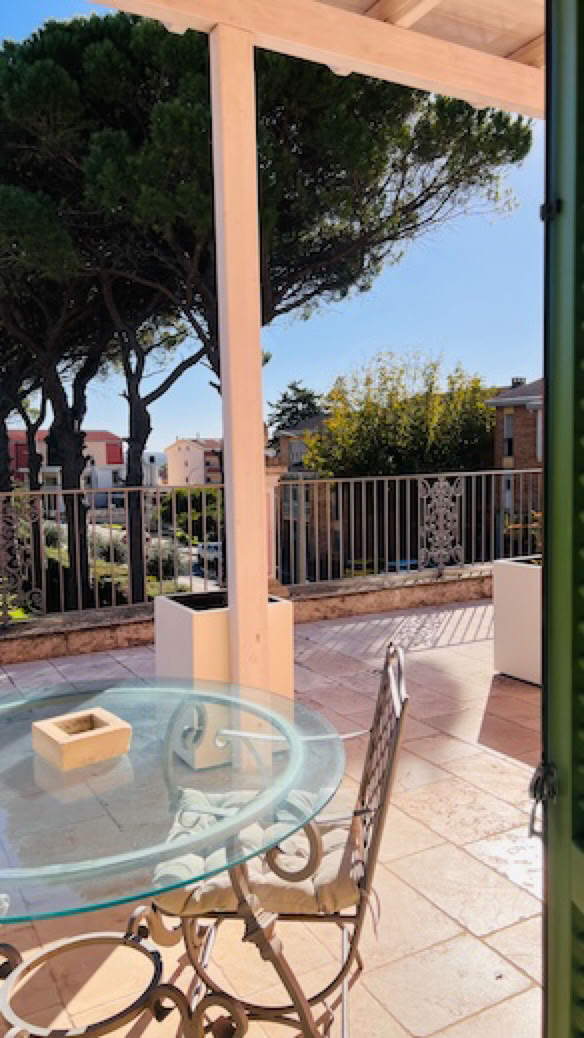 Nous commençons la journée par un solide petit-déjeuner, en extérieur, sur une grande table commune (mais nous sommes seuls !). Ensuite, je fais quelques brasses dans la piscine de la résidence, sous le regard interrogatif du buste de Beethoven … Enfin, nous partons nous promener dans le centre, à 10’ à pied de notre hôtel « Echi di Puglia ».