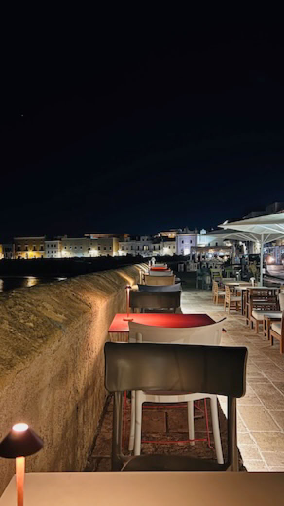 Retour enfin à Gallipoli. Comme Pierre a eu quelques problèmes digestifs pendant toutes la journée (restaurant de la veille ?), il préfère ne pas dîner, et je retourne sur le front de mer, au Mividia, pour manger en solitaire une bonne salade et une petite glace, accompagnés quand même d’un généreux Spritz. Je suis content d’avoir mon sweat à capuche car le froid est un peu tombé sur Gallipoli. Je termine la journée en me promenant un peu dans le quartier du port que nous n’avons pas encore visité.