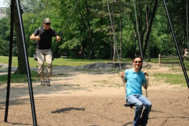 On parcourt Central Park jusqu’au grand réservoir : écureuils, jolis ponts, grands espaces verts, perspectives vers le Sud de Manhattan, beaux buildings qui longent le park ... et même balançoires. Espace exceptionnel et calme en plein coeur de la citée.