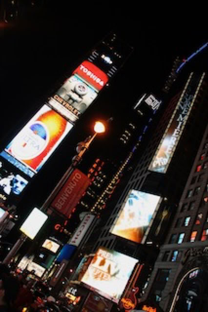 Et après un repas ... très américain (hamburger frite), retour à Time Square, de nuit cette fois : spectacle lumineux hallucinant. Ce terme revient souvent dans le récit, mais cette avalanche de publicité lumineuses et animées géantes est vraiment à couper le souffle (hum, ça aussi, j’ai déjà utilisé comme expression).