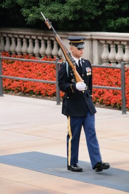 Nous rejoignons ensuite, en métro, le cimetière d’Arlington. Cet endroit est lui aussi très impressionnant, émouvant et inspire le respect, que ce soit par l’alignement des tombes de tous ces soldats, par les différents mémoriaux liés à des événements tragiques (attaque du Pentagone, USS Maine, navettes Columbia et Challenger ...), par le mémorial aux soldats inconnues. Cette dernière est en permanence veillée par un garde en grand uniforme, selon un rituel très précis (21 pas dans un sens, 21 secondes immobile, 21 pas dans l’autre sens, and so on ...)
