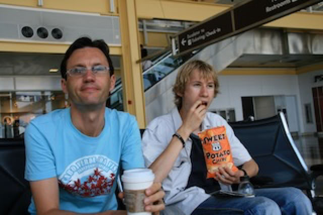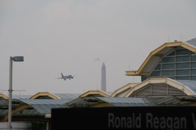 Après toutes ces émotions et ces kilomètres parcourus sous le soleil, nous allons nous rafraîchir ... dans le métro et à l’aéroport Ronald Reagan qui est tout proche. Etonnant d’ailleurs cette aéroport presque en pleine ville, au traffic (plutôt domestique) incessant et dont les avions approchent à basse altitude au dessus des grands mémoriaux de Washington. On prend une pause bien agréable, au frais, assis en regardant circuler les avions.