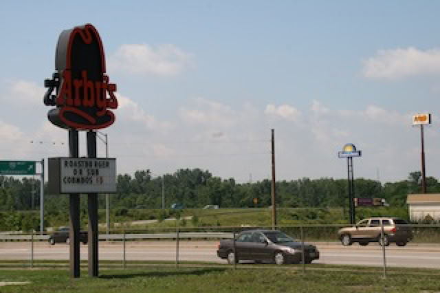 Deuxième jour de voyage pour arriver à Chicago. Cette fois, ce sera l’autoroute : autre ambiance, typiquement américaine aussi : autoroutes larges, très larges, voire très très larges, long, très long camions chromés qui roulent vite, voies en béton qui sifflent, grands panneaux à l’approche des zones commerciales ou des aires, etc.
