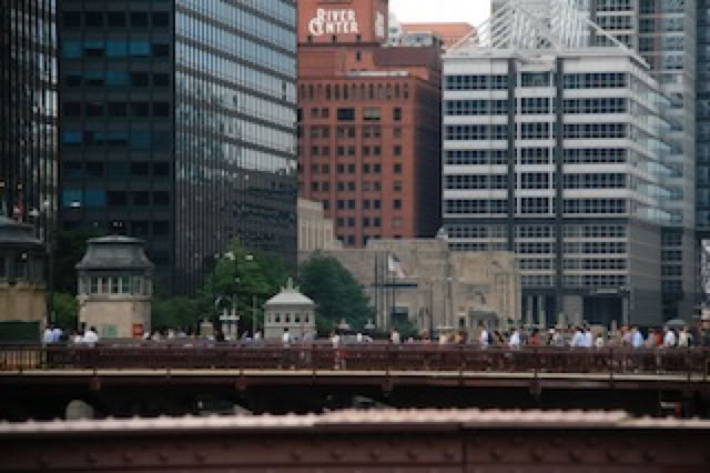 On remonte les bords de la Chicago River (branche sud), avec sa perspective de ponts levis et ses immeubles modernes qui offrent de magnifiques reflets.