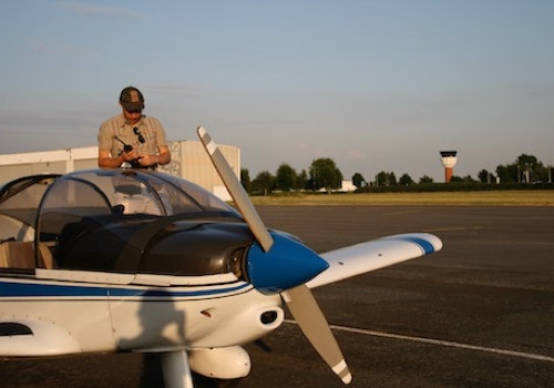 Matthieu nettoie les bords d’attaque de l’avion (pour enlever les moustiques) pendant que je remplis les papiers.