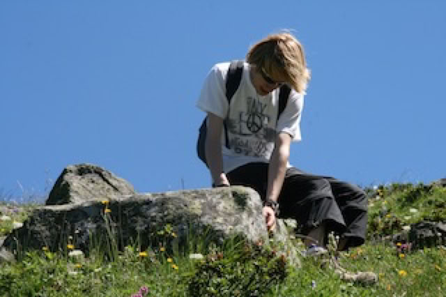 De là, on continue la descente à pied et on s’arrête pour manger sur un gros rocher, en plein soleil, avec vue sur le torrent qui descend de la montagne.