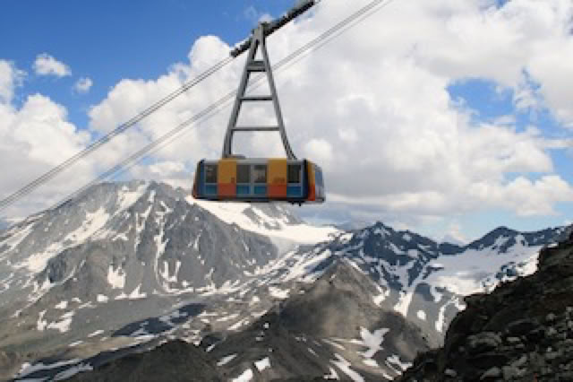 On décide de monter à la Cime Caron par le téléphérique en espérant pouvoir descendre à pieds, mais il n’y a pas de chemin praticable pour cela, d’autant qu’il reste de la neige.