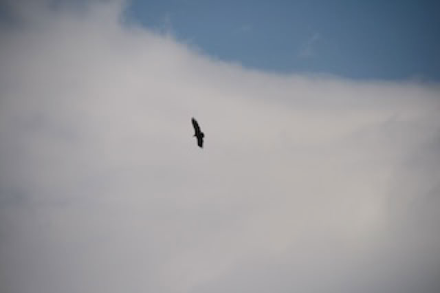 Là, nous avons la chance d’observer un groupe d’aigles d’une envergure exceptionnelle. Ils tournoient, puis se posent en groupe sur un surplomb pas trop loin. Une petite dizaine d’aigles se regroupent ainsi avant de reprendre leur envol et de profiter d’une ascendance pour tournoyer, monter vraiment très haut avant de disparaître plus loin.