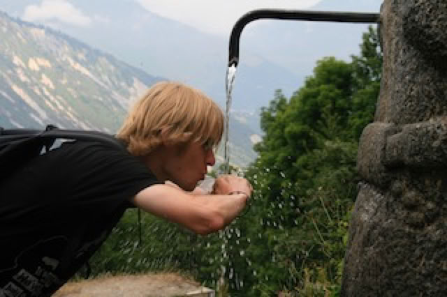 La météo prévoit des averses et de l’orage dans l’après-midi. Compte tenu de l’expérience de la veille ... et des envies de framboises de Matthieu, nous décidons de faire une petite randonnée à St Martin. On se prépare rapidement, on descend à St Martin (c’est Matthieu qui conduit) et on prend le premier tronçon de la remontée mécanique avec le télécabine de St Martin ... très bas de plafond : on se cogne tous les deux au plafond. Le temps est mitigé, mais on tente de continuer et l’on prend le deuxième tronçon par le télésiège ... réellement interminable. Arrivé en haut, la vision des nuages gris acier dans les fonds de vallée vers le Nord nous fait passer au plan B : on enfile nos coupe-vents, on se prend vite fait en photo et on saute dans le télésiège pour redescendre. On s’arrête à la station intermédiaire, le temps à l’air de se stabiliser, et on prend un petit chemin pour redescendre à pied vers St Marcel / St Martin. Pour les framboises, c’est raté : elles ne sont pas encore mures du tout. On se rabat sur 4 petites fraises des bois que l’on se répartit équitablement ! Retour par l’église ND de la Vie : Matthieu fait quelques tractions, s’éclabousse en buvant à la fontaine, et retour à la voiture après un petit tour dans le village (foire artisanale).