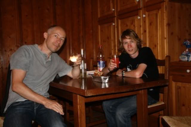 Déjeuner bien agréable chez Nicole et Francis, sur la terrasse. On finit avec un petit Génépi ramené de Val Thorens.