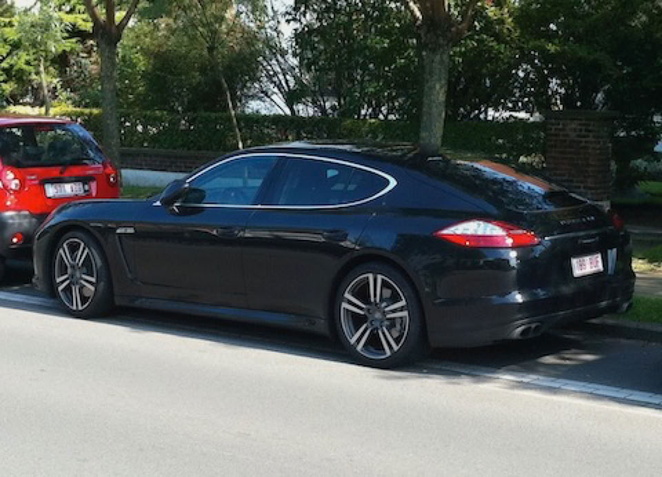 Une Porsche Panamera (non, non, elle ne ressemble pas à une Mégane !). Sinon, 911, Boxter, Cayman, nouveaux Cayenne sont légion à Knokke