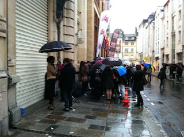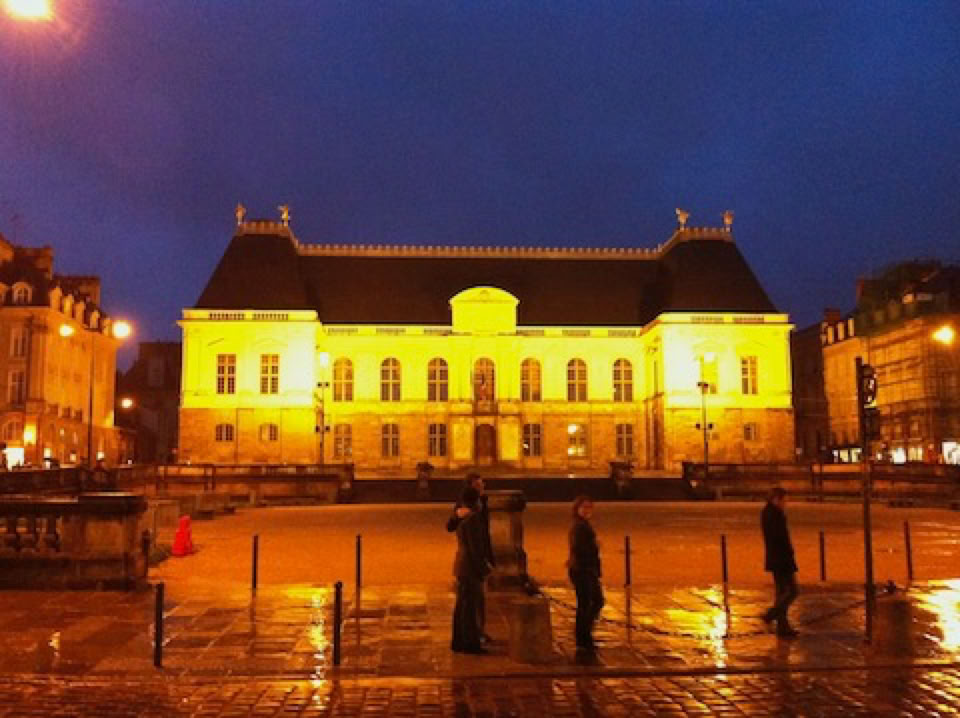 On se prend un thé/chocolat/patisserie dans un sympathique bar-restaurant de Lohéac puis retour à Rennes, toujours sous la pluie évidemment. Il y a toujours du monde qui fait la queue devant l’hôtel pour X-Factor ! Promenade dans Rennes