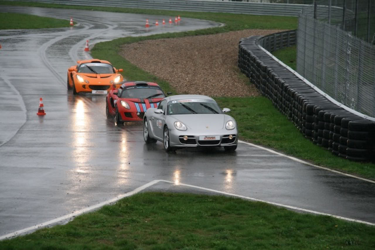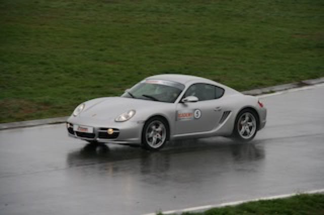 Les 3 autres tours se font sur la Porsche Cayman S : j’y vais un peu plus franchement, surtout dans la ligne droite en essayant de freiner plus tard ... mais c’est encore trop tôt ! On sent quand même que l’accélération est beaucoup plus franche et plus brutale que sur la Z4. Dans les virages, elle est imperturbable, surtout par rapport aux conditions climatiques.