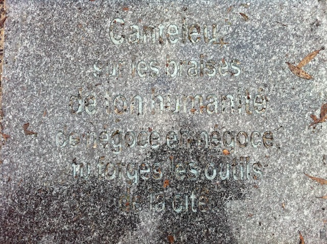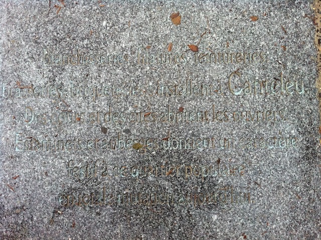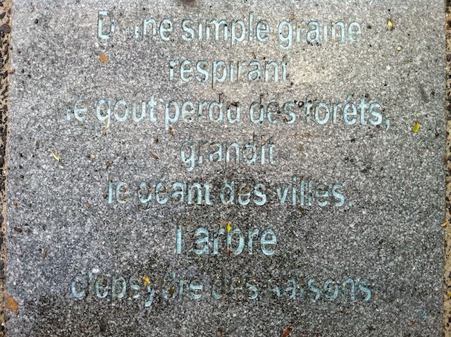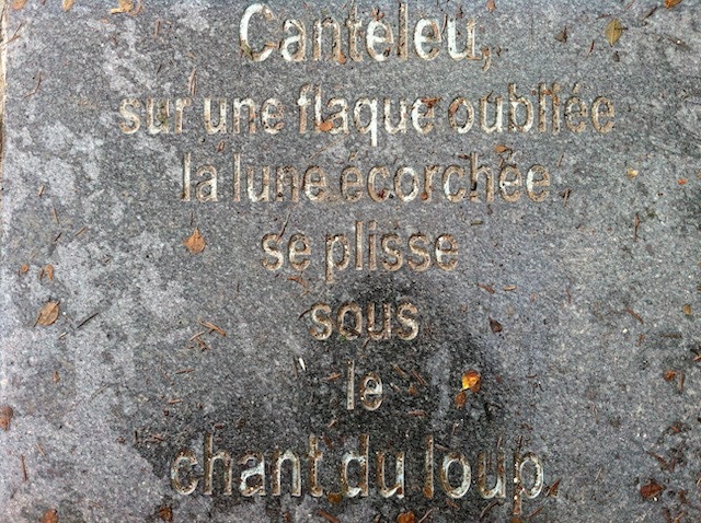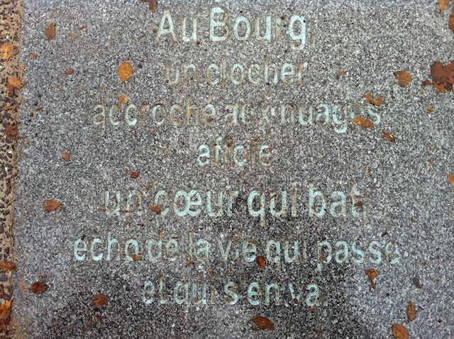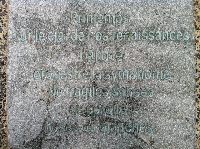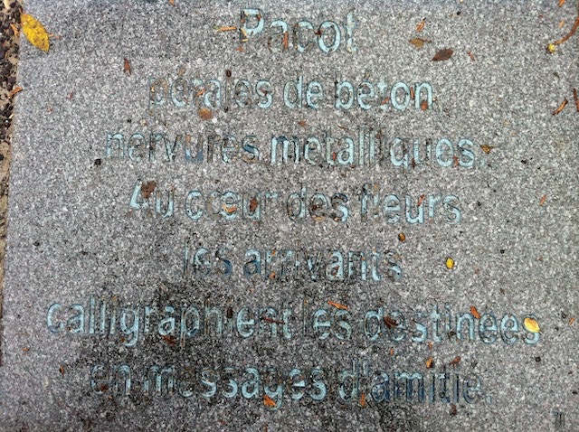 Sur l’Avenue du Maréchal Leclerc à Lambersart en pleine rénovation, 30 plaques gravées des textes écrits par Martine Salmon-Florin sont maintenant incrustées dans les trottoirs, formant ainsi un «chemin poétique» comme l’annonce la première de ces dalles (ci-dessus).