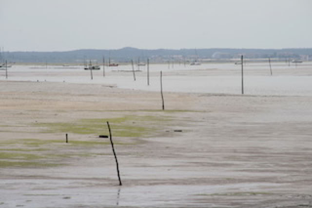 Comme nous n’avions pas eu le temps de rester au Cap Ferret à l’issue de notre tour à vélo du Bassin, on retraverse le bassin, en bateau, pour passer l’après-midi sur la presqu’île. L’arrivée à marée basse est superbe avec les parcs à huîtres découverts.