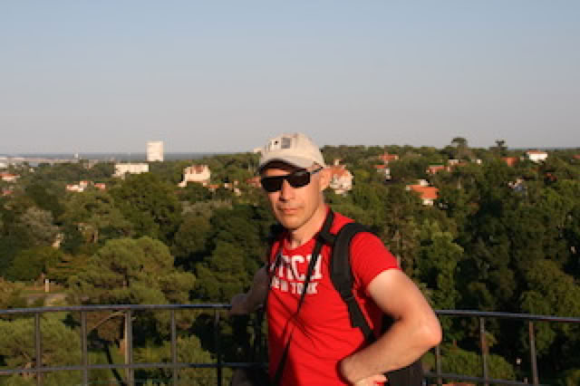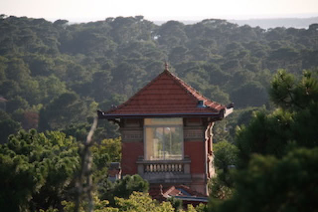 En revenant à la maison, on passe par le belvédère d’Arcachon, tour métallique légère qui domine la ville. Il y a deux ans, Pierre et moi n’avions pas osé monter l’escalier métallique en spirale, suspendu à des câbles ... vertige (Matthieu l’avait monté sans problème). Cette année, nous avons tous les trois courageusement monté les marches pour découvrir une vue magnifique sur le Bassin, au soleil couchant. On voit même l’Océan au delà du Cap Ferret. C’est superbe.