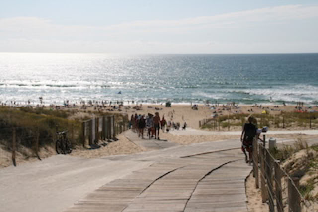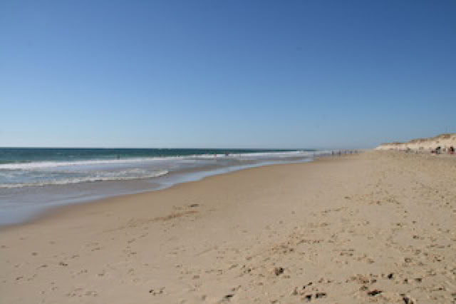 Après un café en terrasse, direction la plage de l’Océan, à pied. Superbe plage, avec la marée qui recouvre progressivement un banc de sable et remplis la baïne. On se baigne tous. Repos, bronzage, ... derniers sauts pour moi dans les rouleaux et retour.