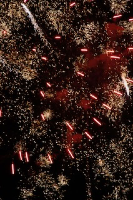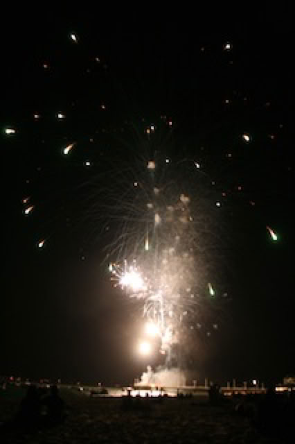 Bouquet final de la journée, le feu d’artifice d’Arcachon. On y va évidemment à vélo. On s’installe sur la plage pour admirer le feu d’artifice tiré depuis la jetée Thiers. En attendant, on voit au loin celui d’Andernos et de Lège. A Arcachon, le feu d’artifice est à la fois dans le ciel et sur la jetée ! Un incendie se développe en même temps que le feu d’artifice est tiré, sans doute du mobilier urbain qui brule ... Mais a priori, rien de dramatique : tout n’a pas explosé et le bouquet final a été comme toujours très réussi.