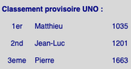 Les scores de UNO :