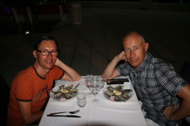 Puis nous ‘traînons’ devant la télé jusqu’en début de soirée car nous avons réservé au ‘Royal Mouleau’ à 21h30. Il y a beaucoup de monde et nous attendons près d’une heure avant de manger nos premières huitres, suivies d’un délicieux plat de morue 😀