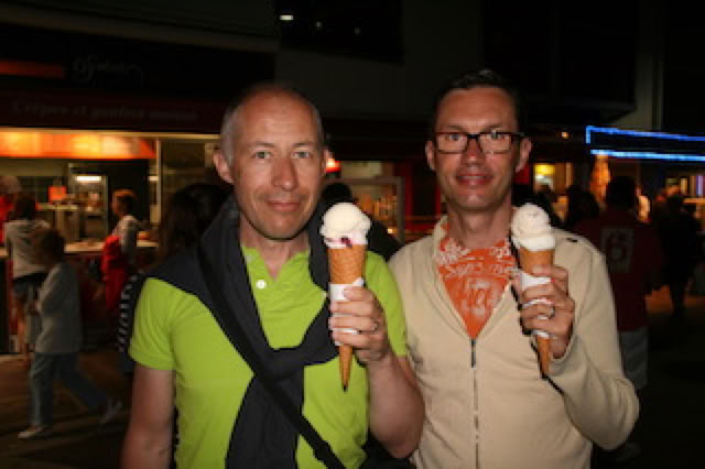 Glace au Mouleau pour Pierre (cannelle / caramel fleur de sel) et moi (amaréto / cerises noires).