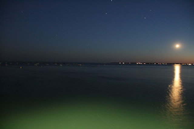 Après le traditionnel barbecue (merguez / saucisses), nous allons au Mouleau, au «Sorbet d’Amour» pour déguster une délicieuse glace: Amareto / Grand Marnier pour moi, Cardamone / Marron pour Pierre ... et rien pour Matthieu qui n’a pas été sage .. enfin si, mais il n’a tout simplement plus faim. Promenade sur la jetée et Matthieu s’essaie à la photo de nuit et les poses longues (voir ci-contre)