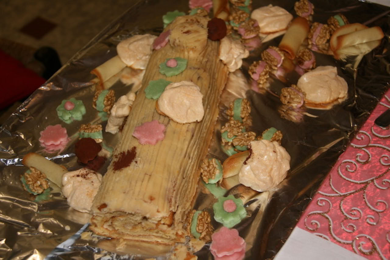 Quelques images du Noël à Samer. En particulier ci-dessus la traditionnelle et excellente bûche à la crème au beurre faite par Maryse et posée en guise de plat sur la vitre arrière d’une Renault 5 (souvenir du garage …)