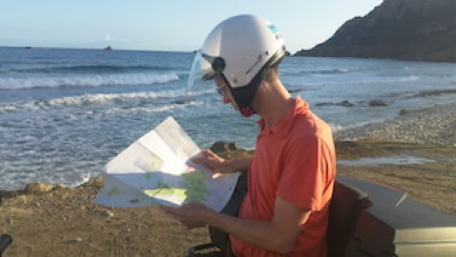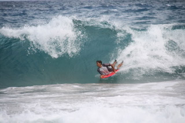 Nous arrivons sur la plage du sud, battue par des rouleaux. Impossible de se baigner, c'est d’ailleurs interdit. Néanmoins, des jeunes locaux font un peu de body-board et de débrouillent plutôt bien sur les rouleaux.