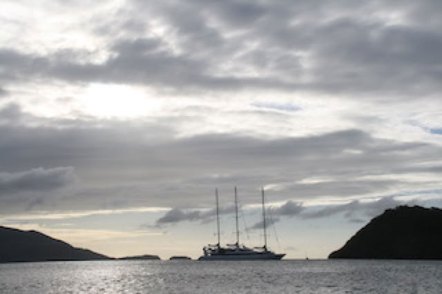 Entre temps, à 23 h le ponant à appareillé discrètement pour sa prochaine destination: le spectacle de la baie de St. Barth couverte de grands mâts illuminés est à couper le souffle. Retour en cabine à minuit 30 environ.