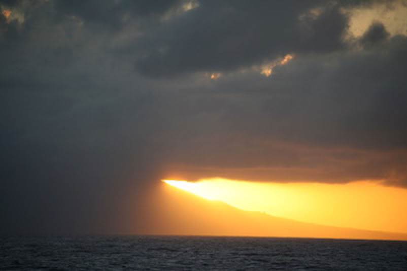 Poursuite du farniente tout l'aprés-midi, discussions avec Fabienne et Charles, fin de journée sur le pont supérieur, avec un coucher de soleil spectaculaire, entre les nuages et la montagne de l'île de St. Kitts : décidément, les couchers de soleil aux Caraïbes son magiques ... mais encore plus sur un voilier.