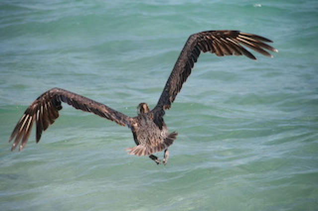 Je prends de nombreuses photo d’un grand pélican qui a visiblement ses habitudes sur le petit ponton. Perché sur un poteau de bois, il repère ses proies et plonge d’un seul coup pour les attraper. Le décollage est aussi spectaculaire et gracieux, un peu comme un ... A380 !
