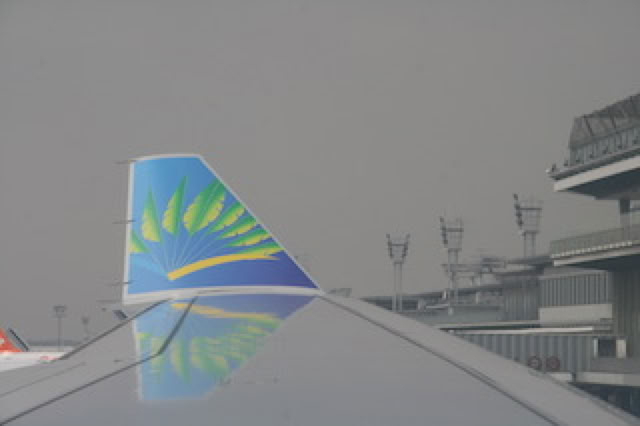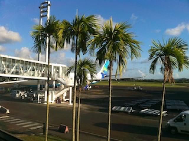 Départ de Courbevoie à 08h45. RER A et B, Orlyval (non compris dans le pass’ Navigo !), arrivée à Orly Sud à 9h45. Passage plutôt rapide de l'enregistrement et de la sécurité et arrivée en salle d'embarquement à 10h30. 1h45 porte à gate : pas mal ! L'A330 d'Air Caraïbe arrive tout juste ... Il y aura donc finalement pas loin d'une heure de retard pour embarquer. Après passage d'un tourniquet magique (qui permet le croisement sans mélange des arrivées et des départs), nous voilà assis au 21a et 21b de l'avion. Après un rolling take-off et un décollage sans histoire, le vol se déroule aussi sans histoire.