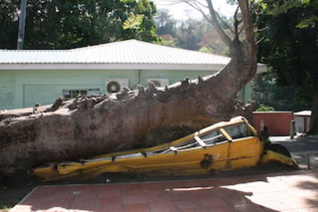 Deuxième arrêt au jardin botanique, avec quelque curiosités comme le bus scolaire écrasé par le baobab (il n'y avait personne dedans !), un immense palétuvier, ou encore l'arbre à boulets de canon avec ses fruits qui ressemblent effectivement à de véritables boulets. Le tout sous un soleil écrasant.